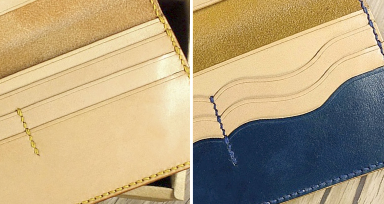 此款長夾的卡片夾層設計可依個人喜好選擇曲線或直線造型。 曲線卡層在視覺上較為柔和,直線卡層則呈現俐落、簡潔的風格,讓作品在整體結構一致的前提下,多一點貼近個人使用習慣與審美的變化。
