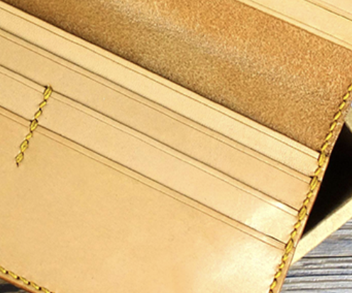 包含多層卡片夾層的組裝方式,理解層與層之間如何安排,讓收納實用、結構穩定;同時也會接觸植鞣革皮件中常見的 T 形結構,透過結構設計,讓多層皮片重疊後的邊緣依然俐落、不顯厚重。